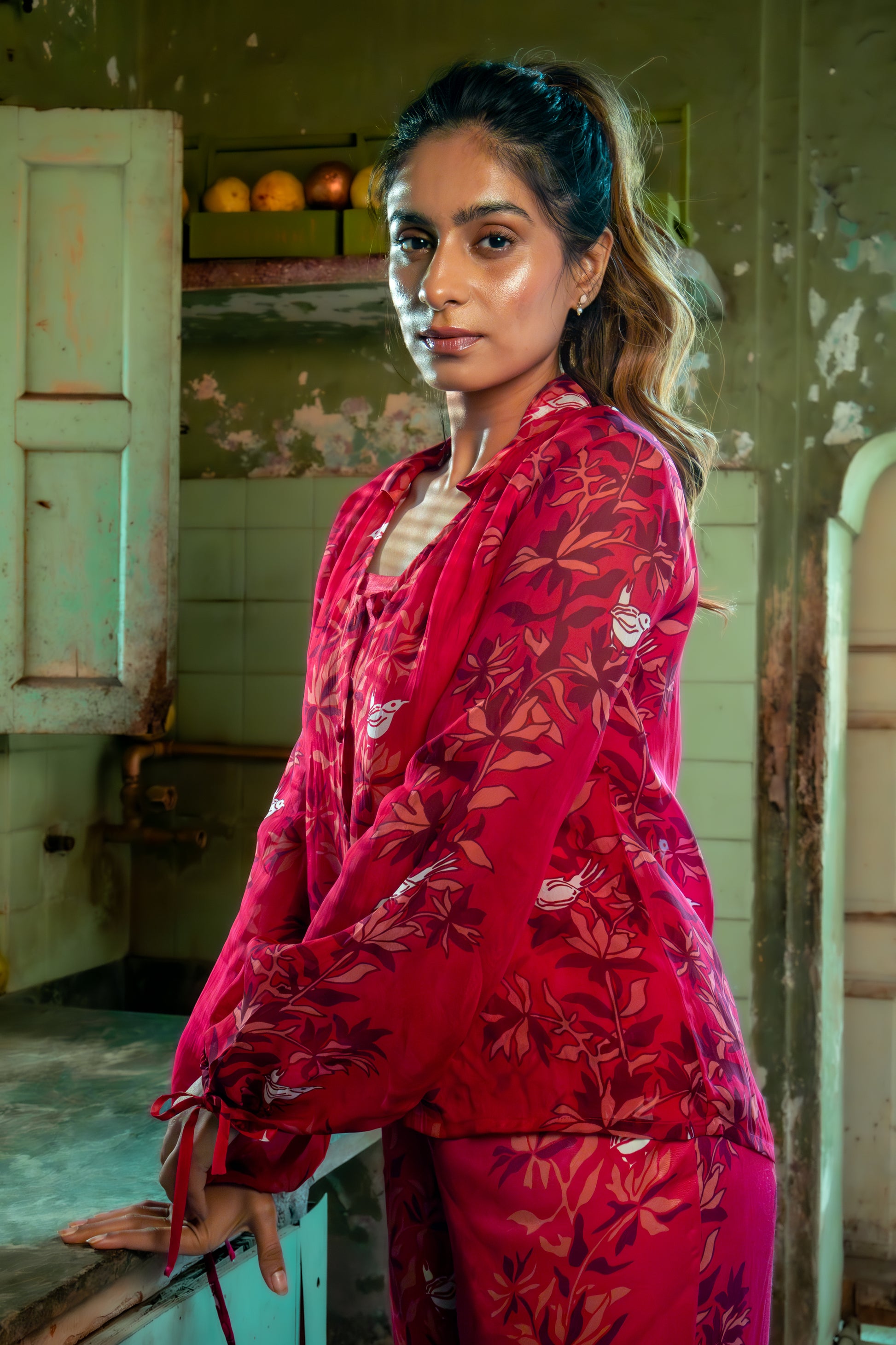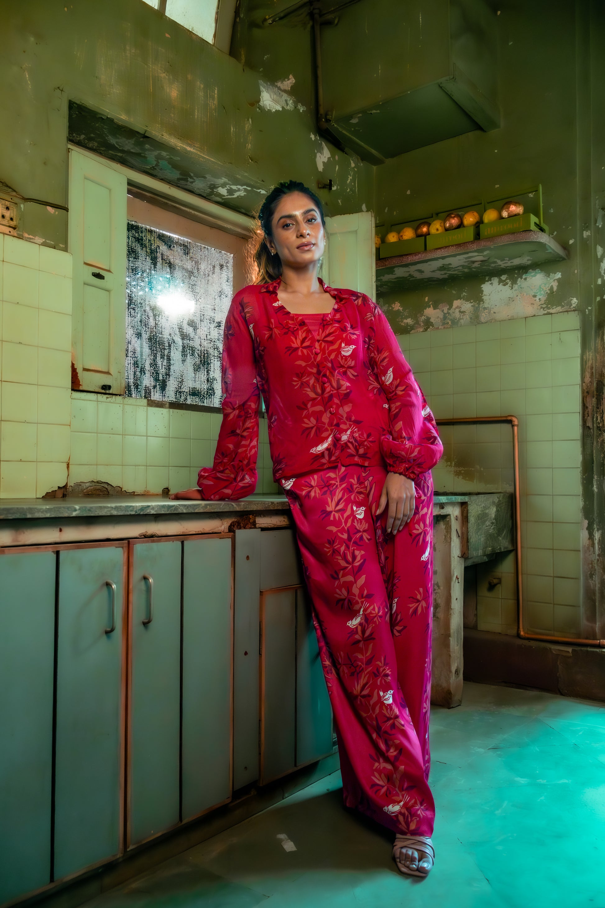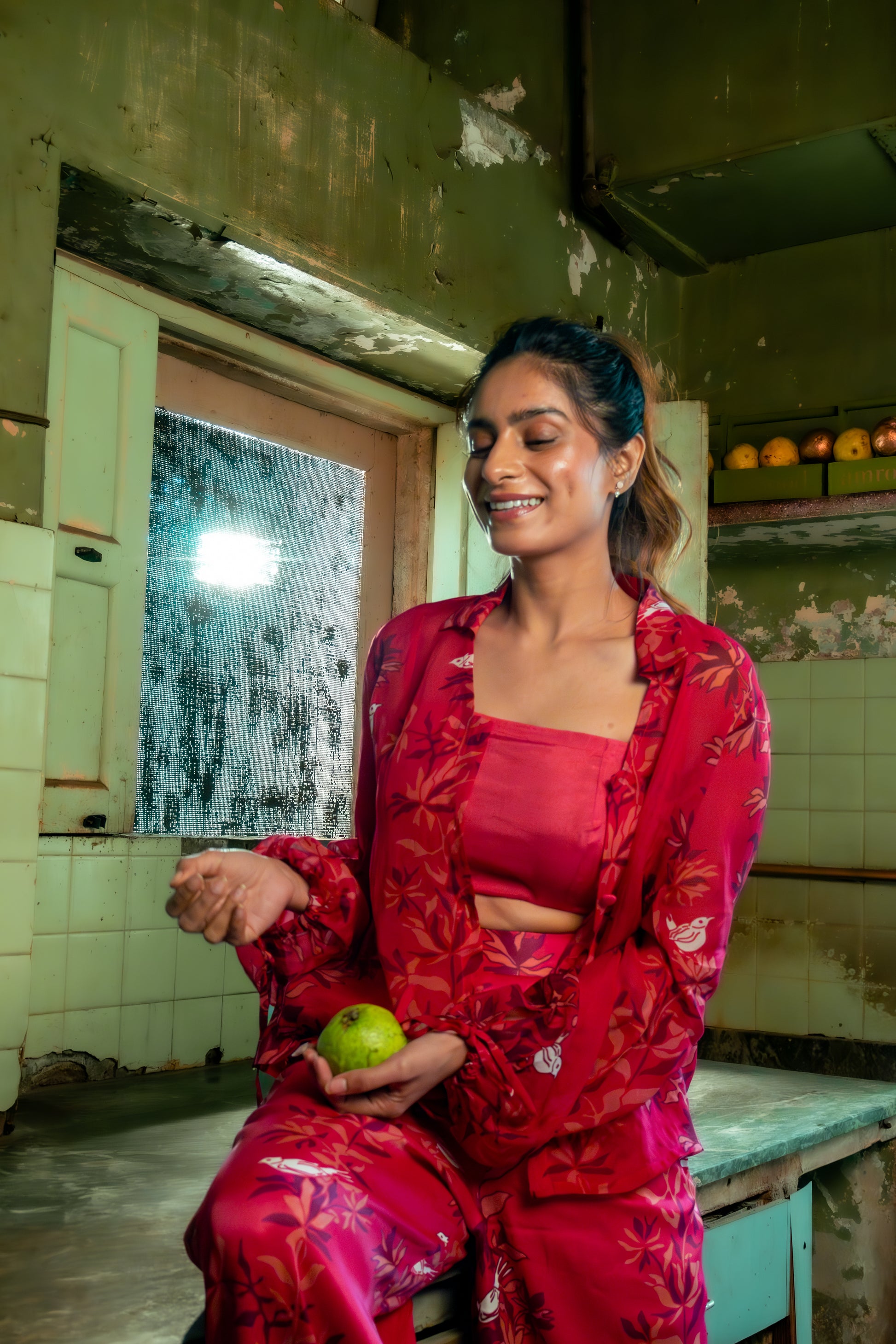 Refresh Your Summer Wardrobe With Our Summer Coord, A Stylish Ensemble Designed To Elevate Your Warm-Weather Look Effortlessly. This Set Features An Organza Collared Button-Down Shirt With Full Sleeves, Exuding A Sophisticated Charm Perfect For The Season. The Shirt Is Adorned With Tie-On Detailing, Paired With Elasticated Pants And A Chic Bustier, This Coord Set Offers Both Comfort And Style For Any Summer Occasion.