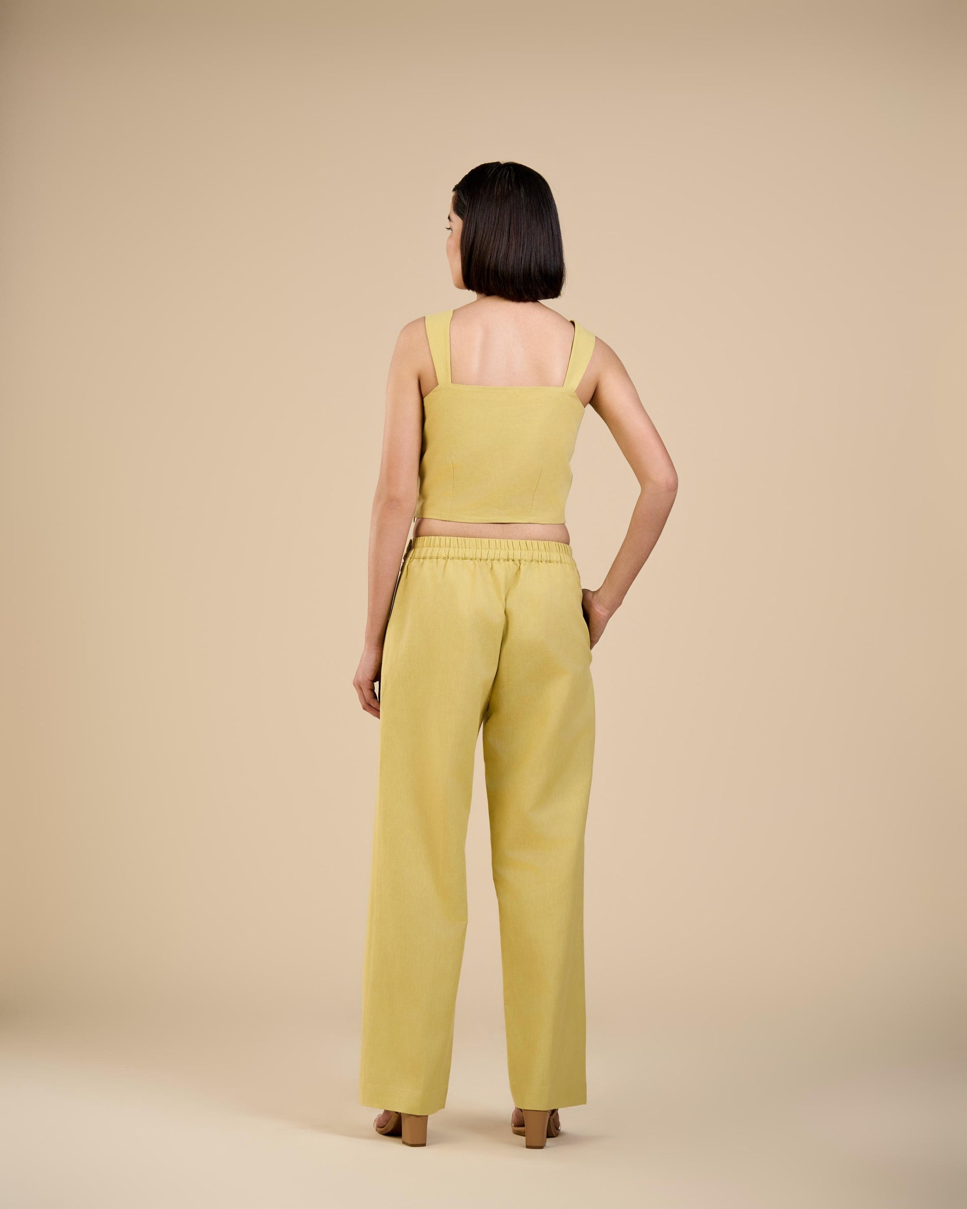 This Green Co-Ord Set Is All About Intricate Embroidery And Chic Style. The Hip-Length Jacket Is Fully Embroidered, Featuring A Notch Collar And Sleeveless Design. It Fastens With Two Embroidered Buttons At The Center Front And Has Hooks For Closure. The Fitted Bustier Is Adorned With Delicate Cutwork Embroidery, With Wide Shoulder Straps And A Round Scallop Neckline. It Secures With A Concealed Zipper On The Side Seam And Has A V-Cut Scallop Hemline For Added Flair. Paired With Full-Length Straight Pants, Which Boast A High-Rise Fit And An Elasticated Back Waistband, These Pants Also Feature A Concealed Zipper On The Side Seam And A Pocket Discreetly Placed At The Side. Together, This Co-Ord Set Exudes Elegance And Sophistication.
