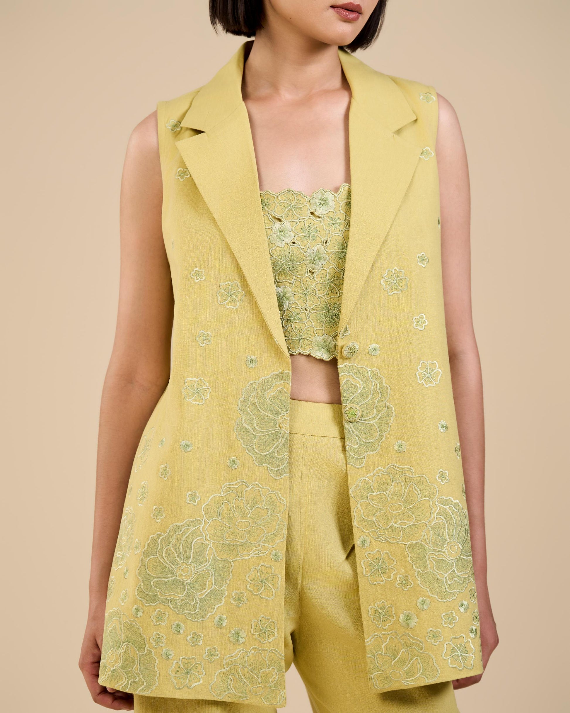 This Green Embroidered Bustier Is Fitted And Adorned With Intricate Cutwork Embroidery, Adding A Touch Of Elegance. It Features Wide Shoulder Straps For Comfort And Support. The Neckline Is Scalloped, Giving It A Delicate And Feminine Look. With A Concealed Zipper On The Side Seam, It's Easy To Slip Into. The Hemline Is V-Cut With Scalloped Edges, Adding A Stylish Finishing Touch To This Chic Piece.