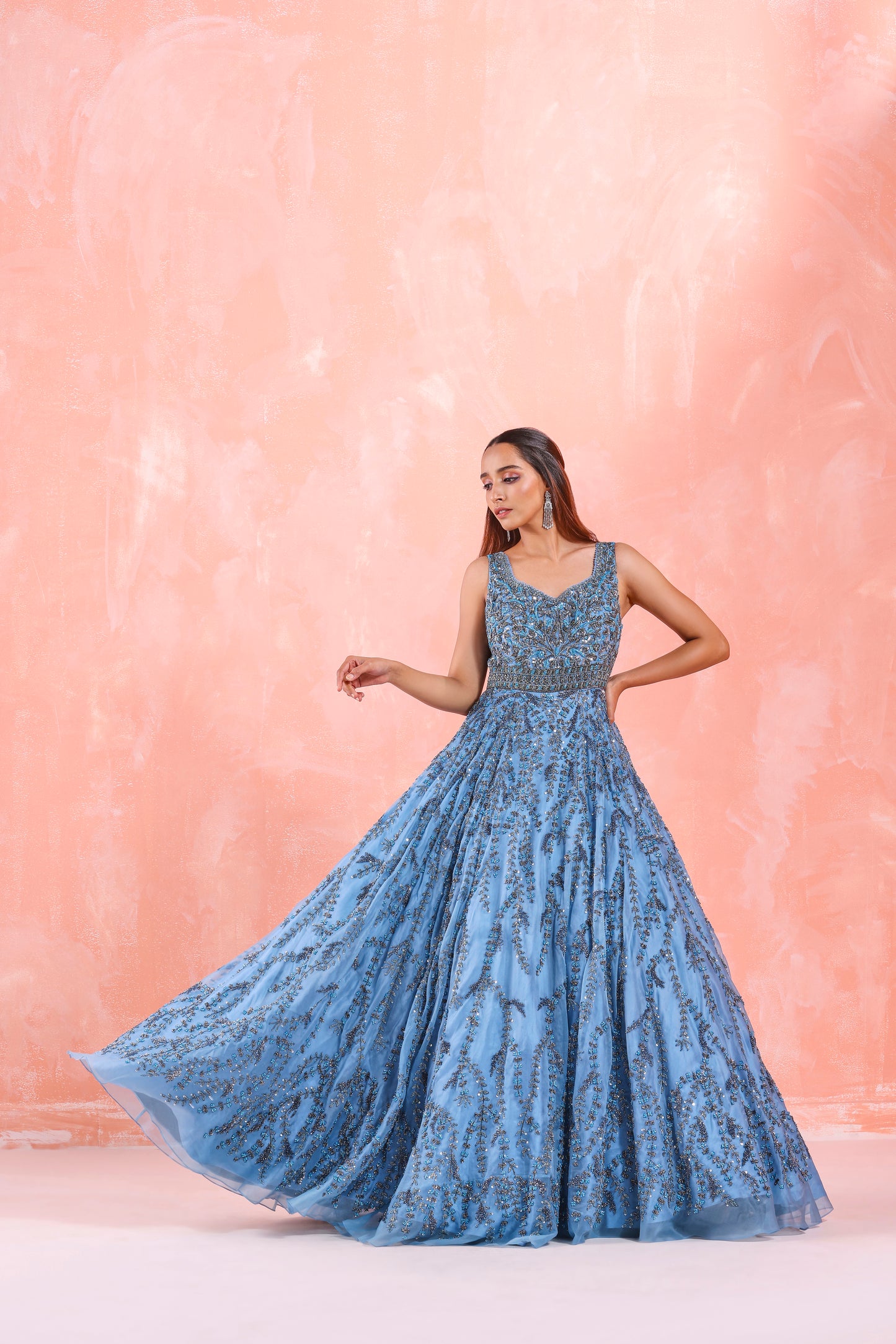 STEEL BLUE EMBROIDERED GOWN