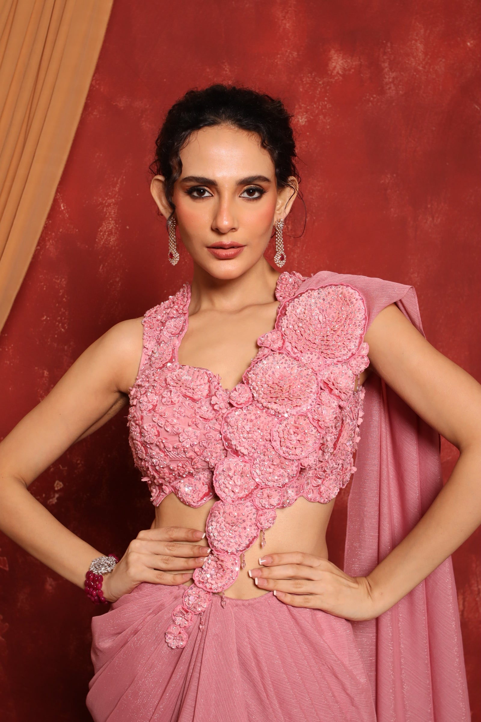 Make A Statement In Exquisite Embroidered Elegance! Admire The Intricate 3D Floral Embroidery On This Exquisite Saree, Meticulously Handcrafted With Katdana, Chir And Scuba Fabrics. The Mermaid Cut And Beautifully Flowing Drape Create A Look That Is Both Modern And Timeless, Perfect For Celebrating Life's Special Moments.