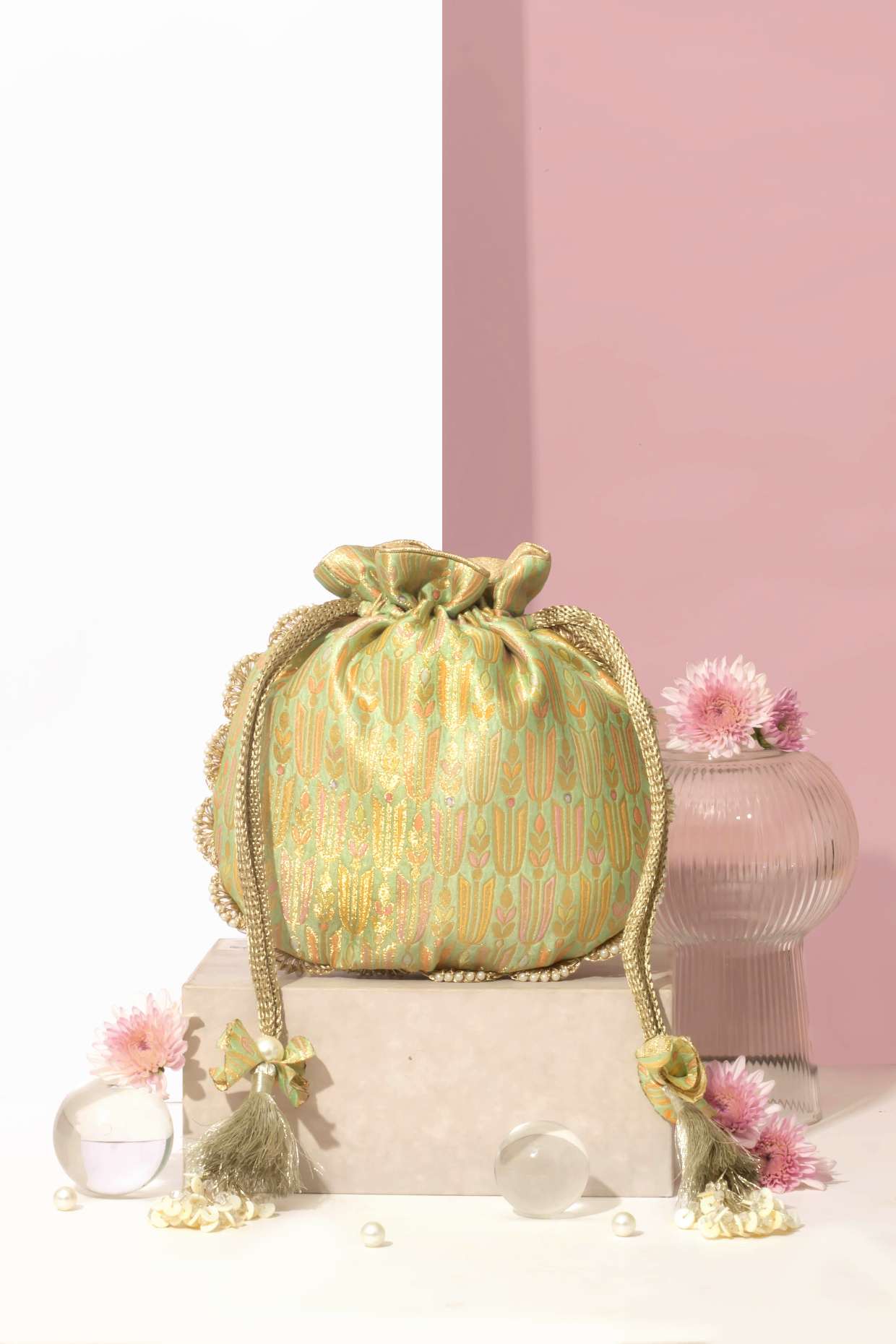 TITLI PURE BANARASI SILK POTLI - GREEN
