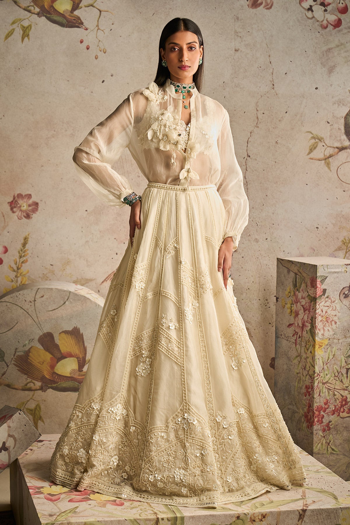 Discover Timeless Grace With Our Ivory Organza Shirt Adorned With Delicate Embroidery. This Exquisite Piece Marries Classic Elegance With Contemporary Style. The Intricately Embroidered Motifs Add A Touch Of Sophistication, Making It An Ideal Choice For Those Seeking A Refined And Captivating Look.