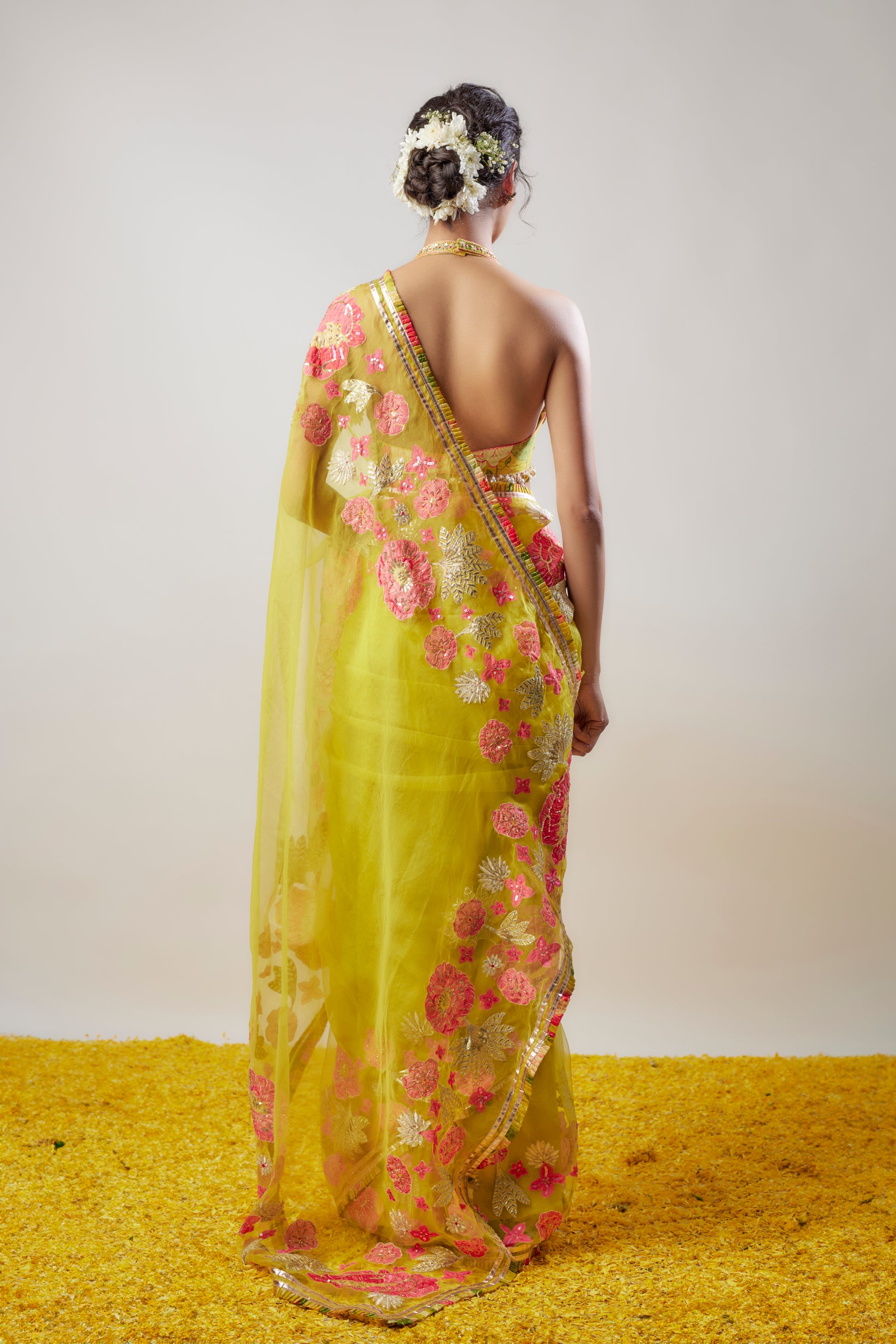 Make A Bold Statement In Our Chic Saree, Paired With A Trendy Halter Neck Sleeveless Blouse For A Modern Twist On Tradition. Crafted From Luxurious Fabric, This Ensemble Features Intricate Details And A Flattering Silhouette That Enhances Your Natural Grace. Perfect For Evening Gatherings Or Special Occasions, It's A Must-Have For The Contemporary Woman!