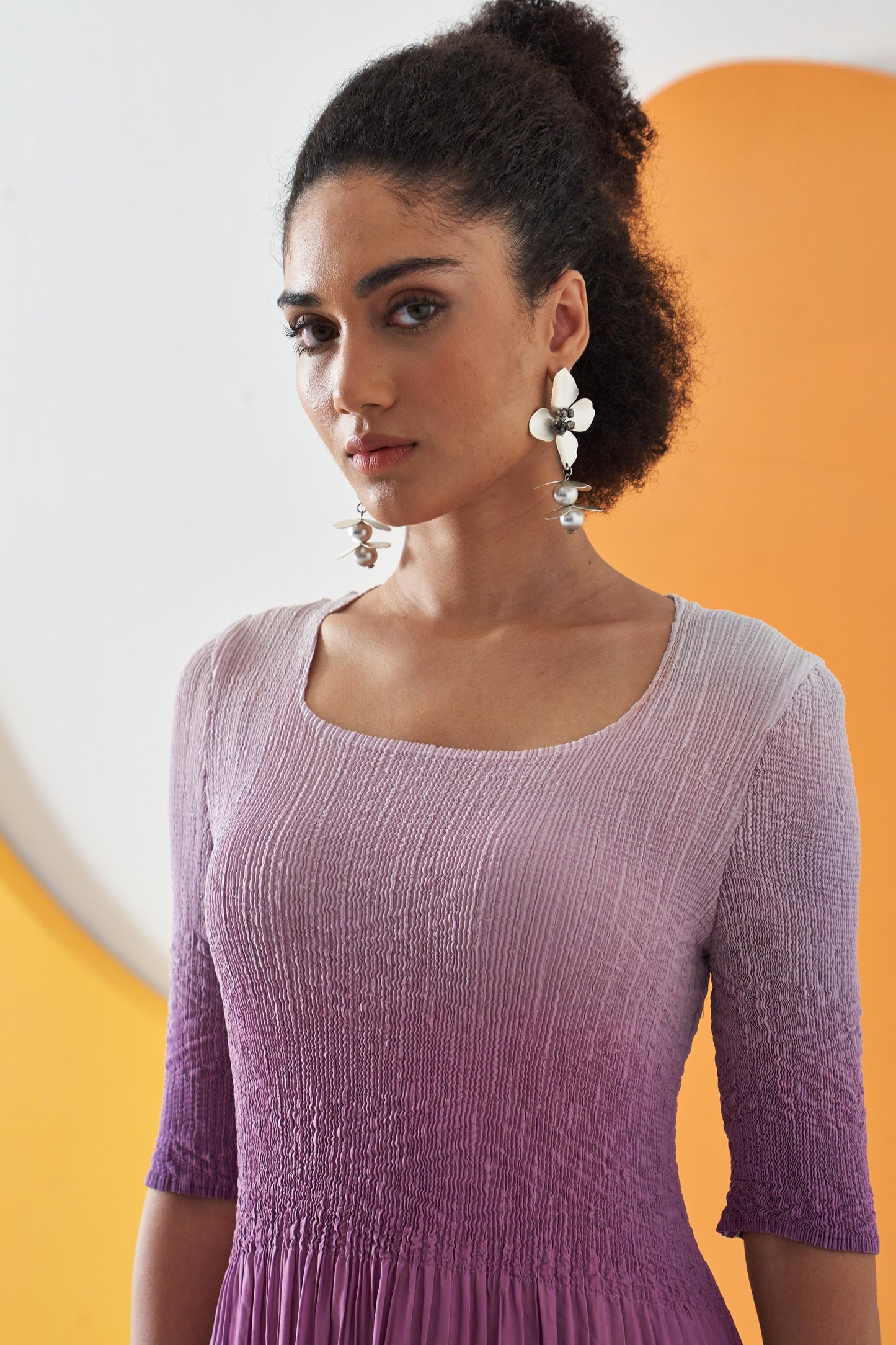 Featuring A Round Neck Dress With Crushed Ombre Effect On Top In Crepe Base.