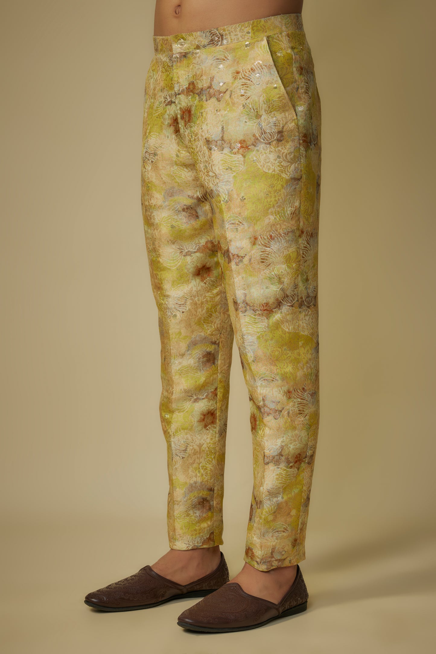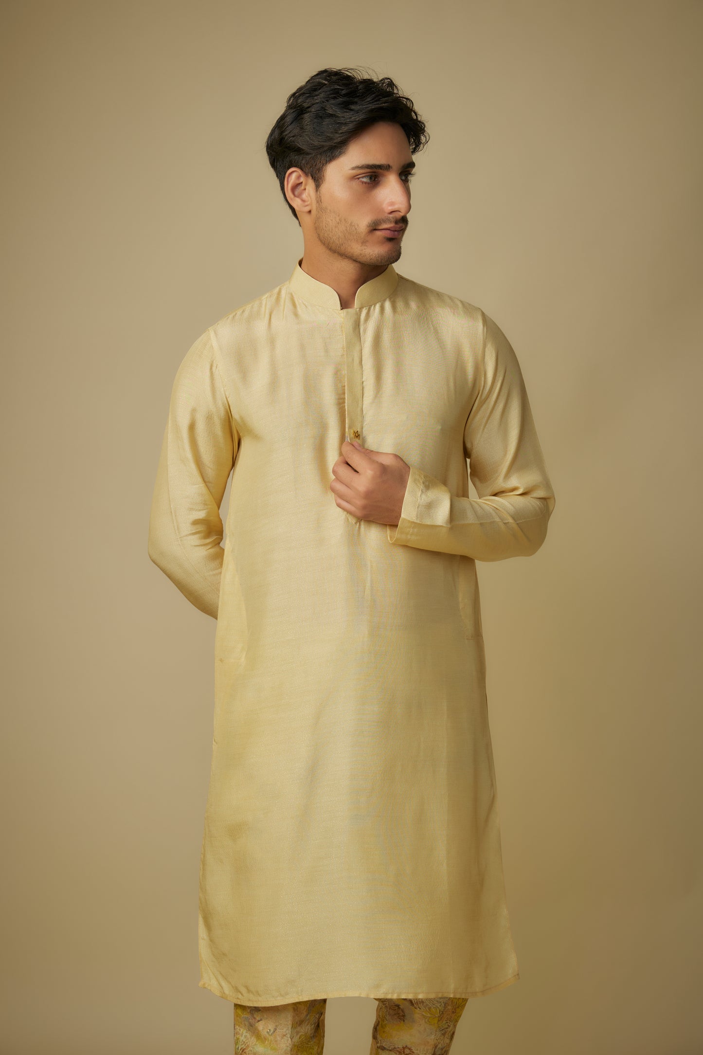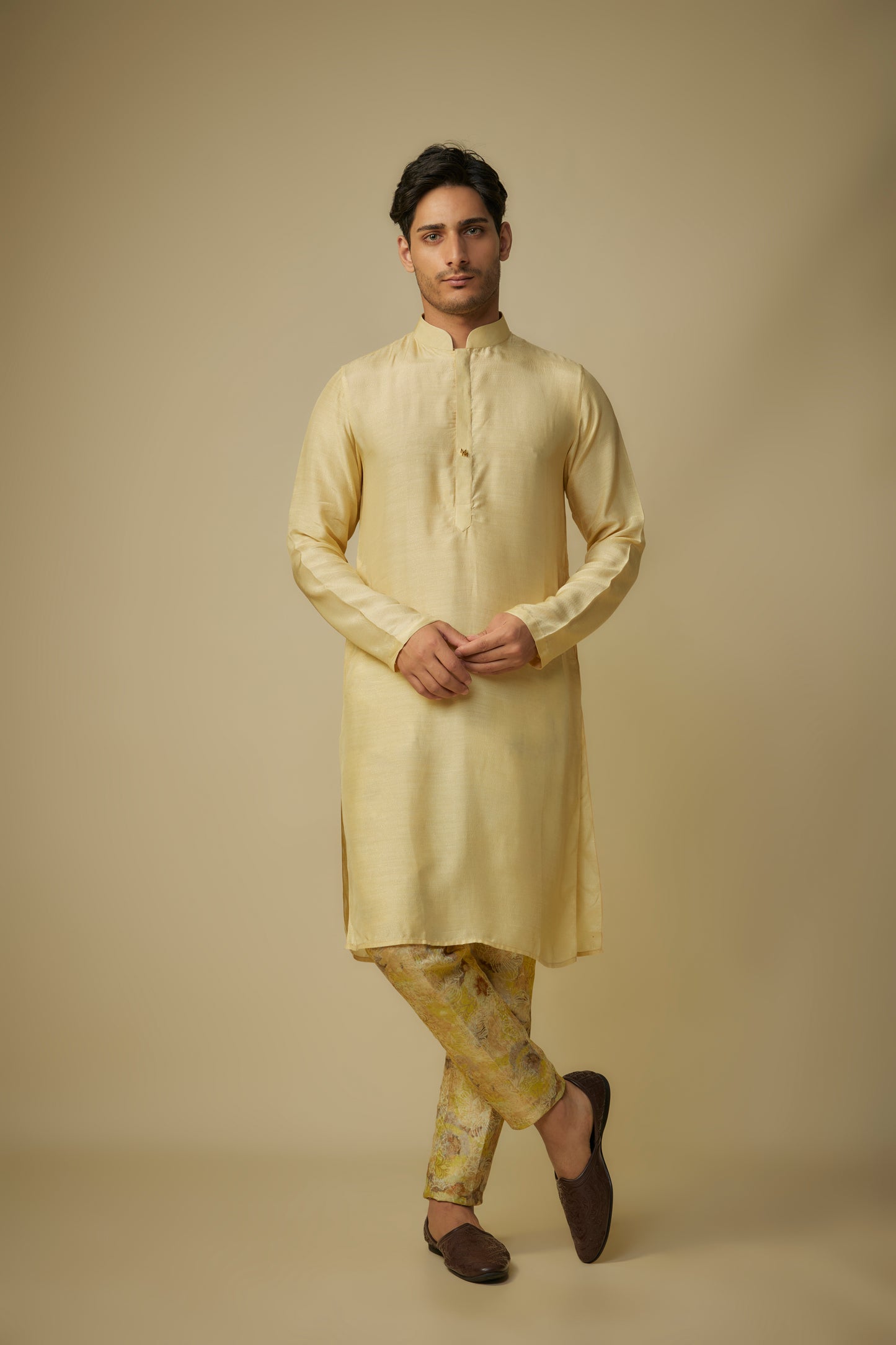 Featuring Yellow Satin Silk Kurta With Yellow Jacquard Pant.