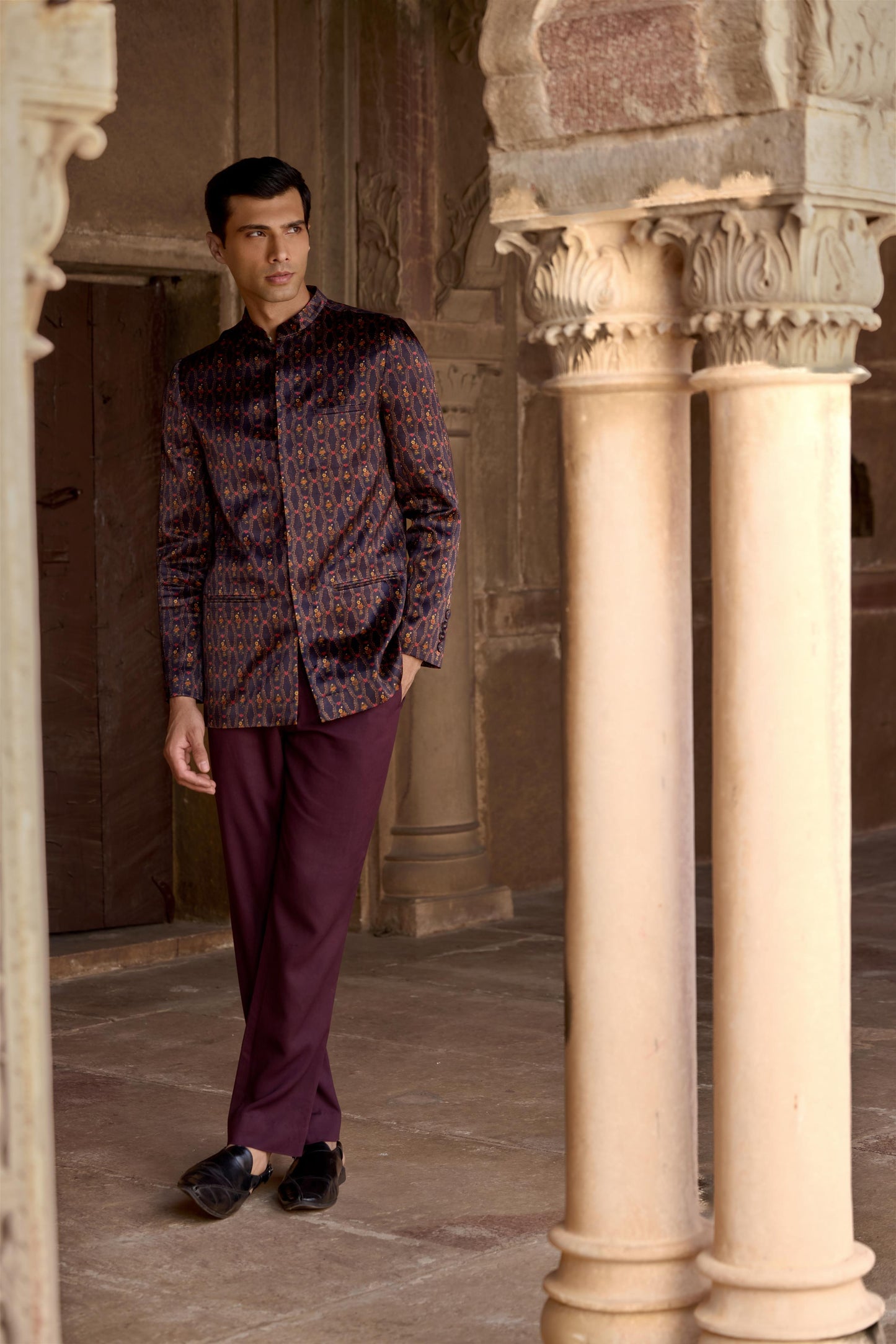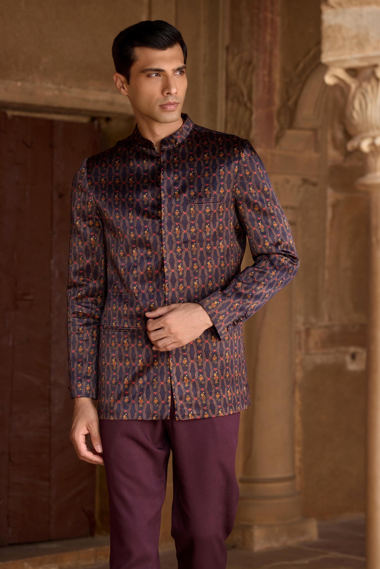 Featuring Zayn Achkan Set With Mughal Inspired All Over Floral Print Running Along The Silhouette on, Paired With A Matching Straight Pants . Perfect Outfit To Ace That Contemporary Indian Look.